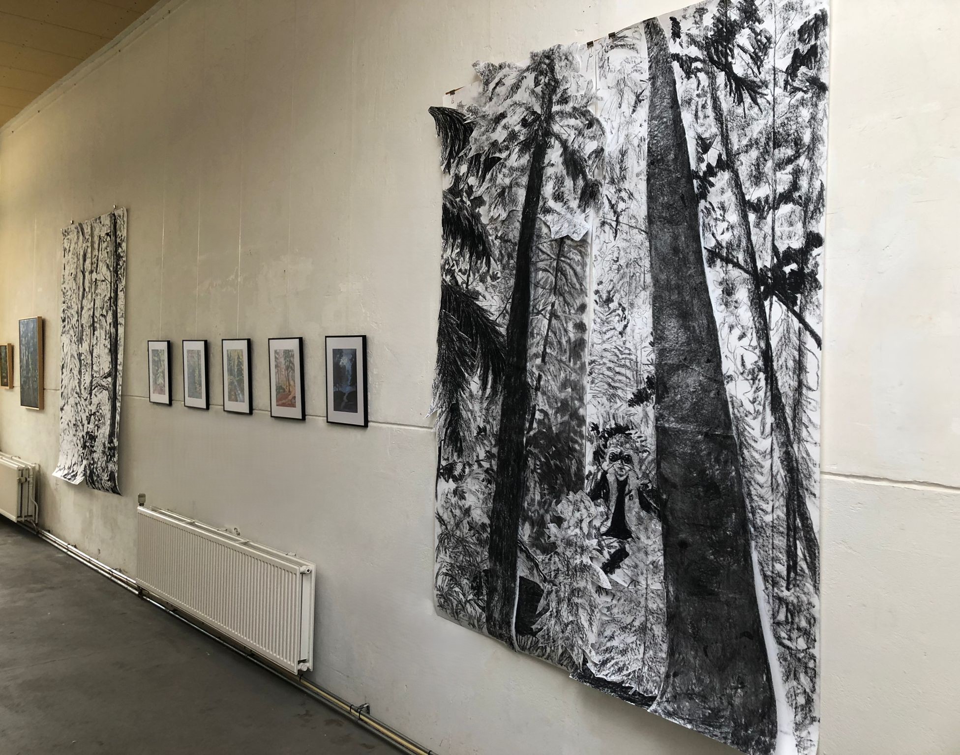 De kunstwerken van Iris Duchateau (1969; Artez, Codarts) toveren de galerie om tot een weldadige bosrijke omgeving. Doorkijkjes tussen de bomen, zonlicht langs de bladeren en uitzicht over de heidevelden.