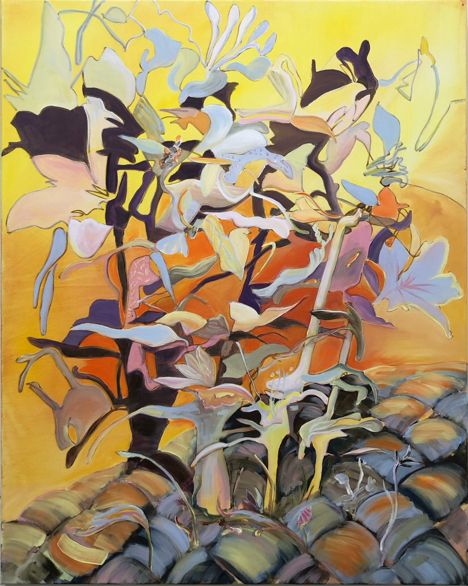 Justyna Pennards-Sycz (1969 Polen; HKU) exposeert voor de derde keer in de galerie. Na surrealistische landschappen, die ze creëerde omdat de echte wereld soms te absurd voor woorden is, belandde Justyna in een geweldige florale episode.