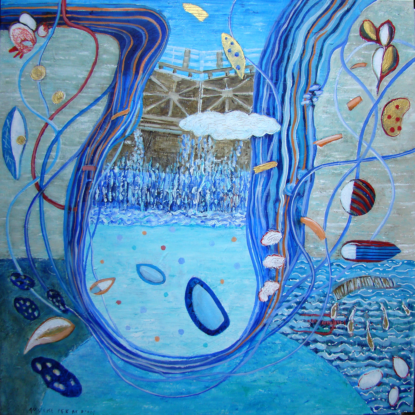 ‘Stromen, stuwen, sluizen’ – Anneke Peereboom, acryl op doek, 100 x 100 cm