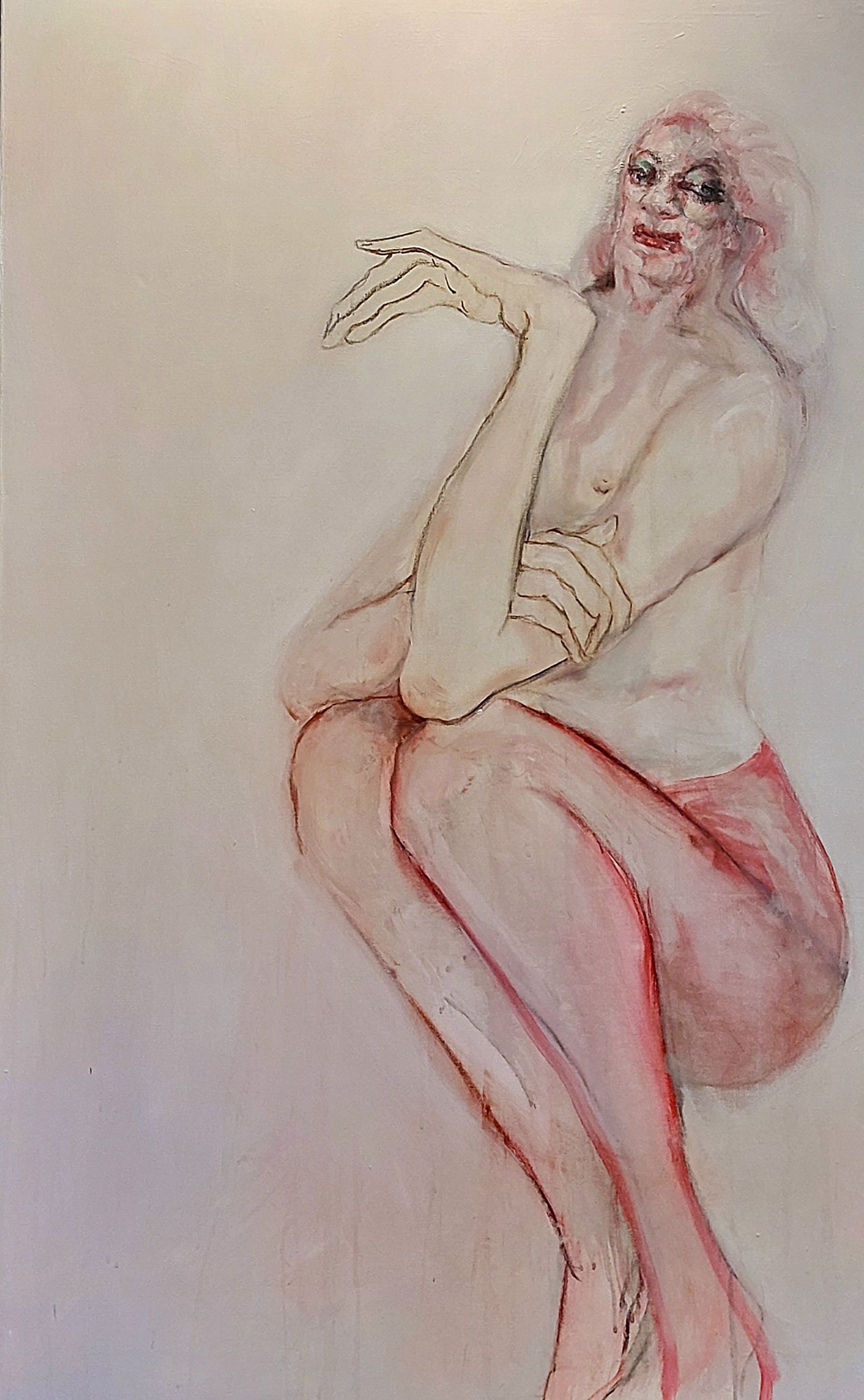 In de Expositieruimte is ‘I am possible’ te zien, met schilderijen van Dorien Plaat. Dorien portretteerde transvrouwen, crossdressers en drag queens. Mensen die opvallen en er niet helemaal bij horen, een gevoel dat ze zelf herkent want ze groeide op als wit meisje in Ghana. Het lukt Dorien om hun kwetsbaarheid op een prachtige manier te verbeelden. Ik vind het mooi om te zien dat haar ‘modellen’(want ze bestaan niet echt) zichzelf kunnen zijn. Voor de toeschouwer kan dat verwarrend zijn: Waar kijk je nou eigenlijk naar? En dat roept de volgende vraag op: Doet dat er toe?