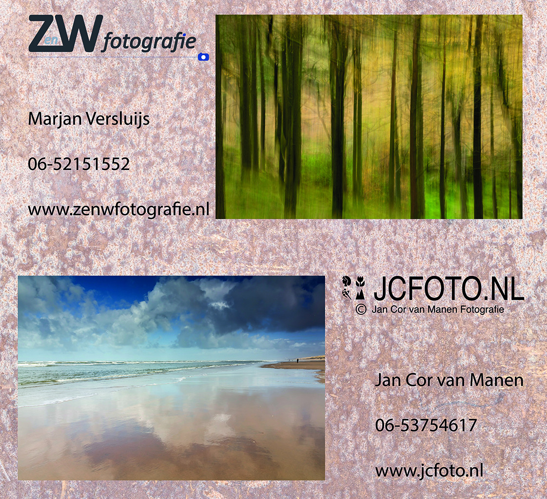 | Za 1 tm za 26 augustus – Expositieruimte van Galerie Van Slagmaat Foto-expositie van JC Foto (Jan Cor van Manen) en Z en W Fotografie (Marjan Versluijs) uit Vianen. Na 5 jaar zijn ze terug in Woerden met een mix van landschap, natuur, industrieel, waarbij het experiment niet geschuwd wordt. Elke vrij- en zaterdag zijn ze van 10-17 uur zelf aanwezig om je te ontmoeten. Je kunt ook een afspraak maken voor een ander moment. Klik HIER en maak een keuze uit de beschikbare dagen en tijdstippen (ca 1 week vooruit; tot 4 uur van te voren te boeken) of bel Mariëtte op tel. 06 4872 9544. |