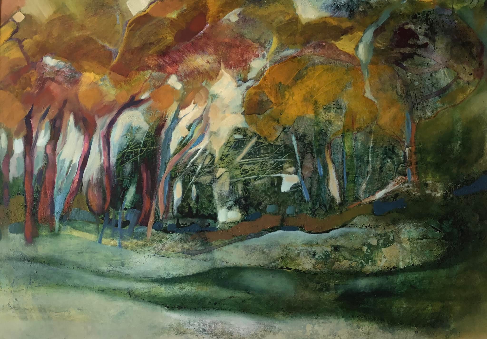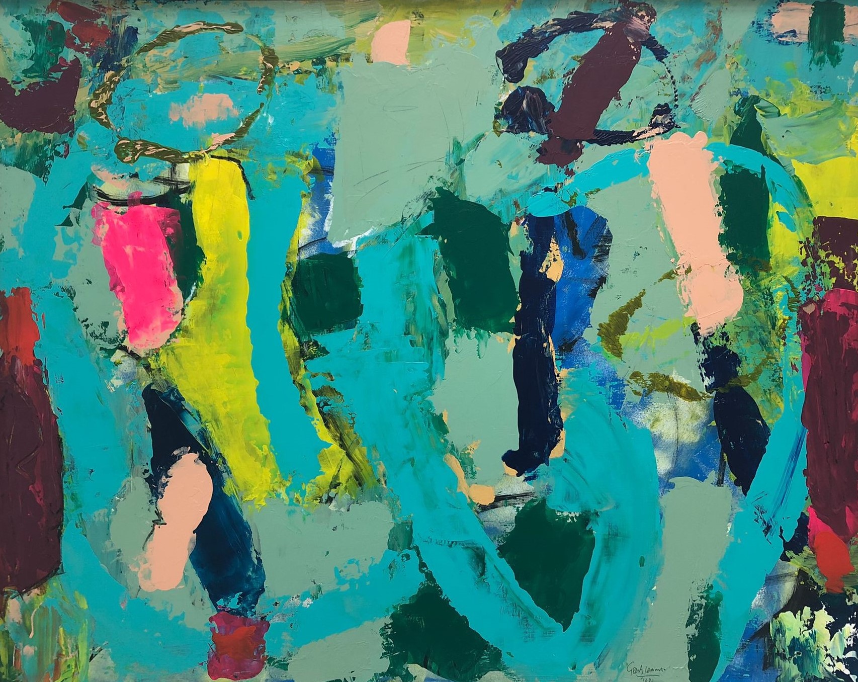 | Do 19 november tm za 5 december 2020 – Expositieruimte van Galerie Van Slagmaat Grote kleurrijke schilderijen op doek, maar ook kleiner werk op paneel, spannende composities in pastel, verfijnde pentekeningen: Ariadne Leefoge (1961; Kunstacademie Haarlem-Leiden) legt haar hele wezen in vele werkvormen. Haar schilderwerk is een spel met verf, beweging en gelaagdheid. Het ontstaat door observatie van en verwondering over de wereld om haar heen. |