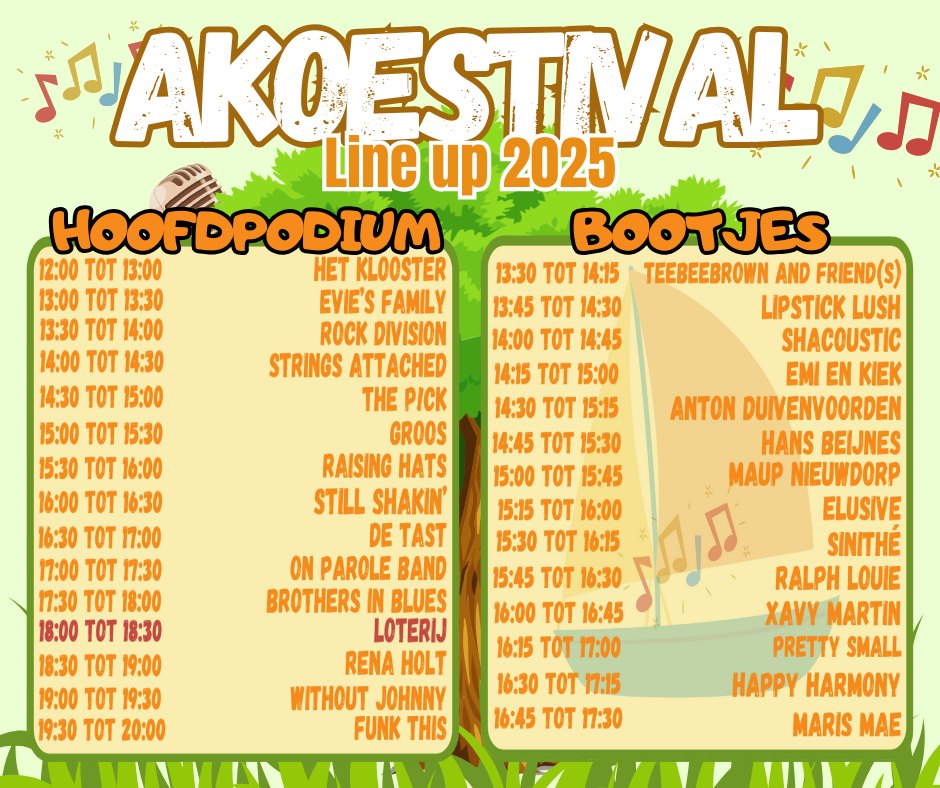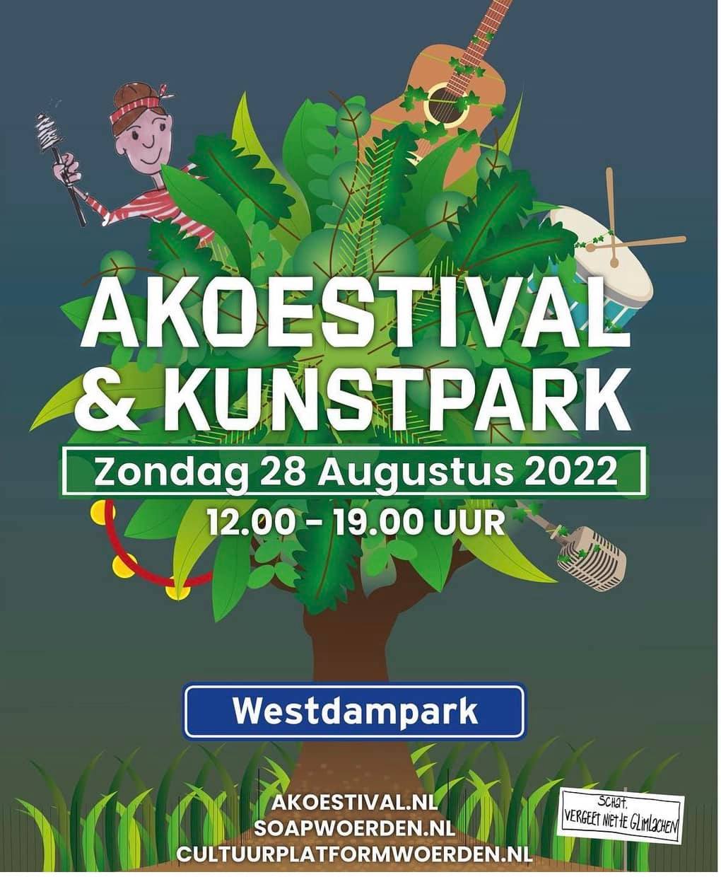 | Zo 7 september 2025 – Westdampark Woerden 12-17 uur KUNSTPARK! De leukste zondagmiddag van het jaar: 80 kramen met creaties van makers en hier en daar wat gekkigheid. Zoals (??) het dichterspodium om 14-15-16 uur, met naast de Woerdense line-up ook een delegatie uit Krommenie met o.a. Co van Assema! Whoop whoop! Aan de andere kant van het bruggetje van 12-20 uur de 20e editie van het AKOESTIVAL met non-stop live optredens. Klik hier voor de line up. Gratis entree! |