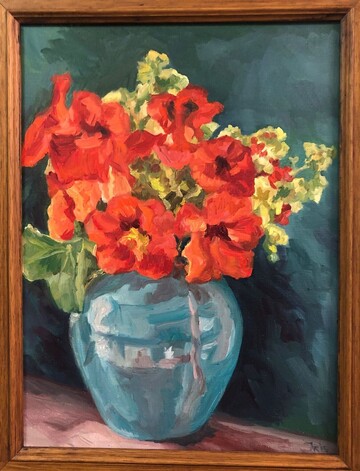 | Zondag 1 december 2019 13.30-16.30 uur Kunstschilder Nicoline Heemskerk verzorgt een workshop Hip Boeket Schilderen in de galerie. Ze brengt verse bloemen mee uit de Bollenstreek, die je in acryl gaat schilderen op een doek van 40 x 40 cm. Prijs € 45 p.p. inclusief materiaal, koffie, thee en lekkers. Aanmelden kan tot en met vrijdag 29 november 2019 in de galerie of via workshop@galerievanslagmaat.nl o.v.v. datum en aantal personen. P.S. Hiernaast het resultaat van de workshop! (klik om te vergroten) |