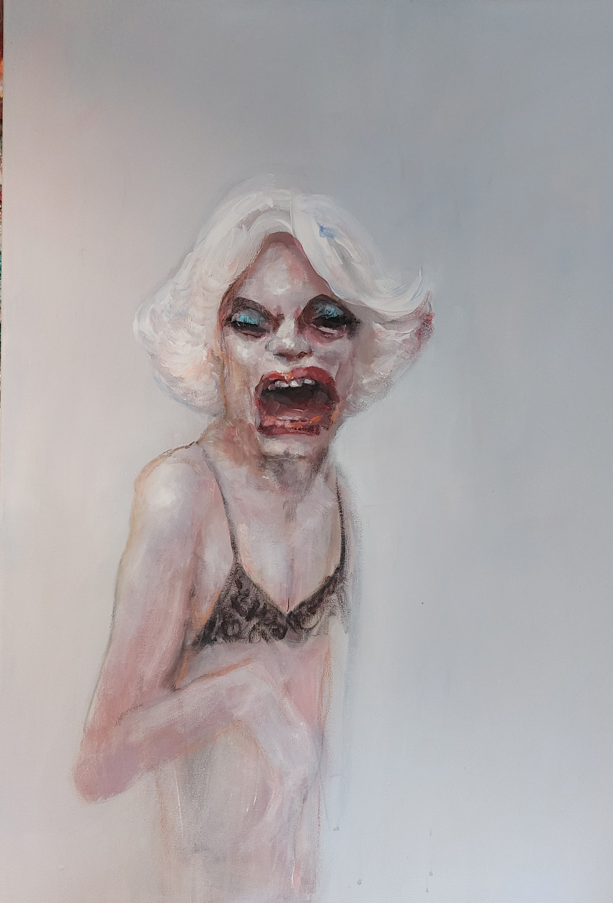 | Vr 6 tm za 14 maart 2020 – Expositieruimte van Galerie Van Slagmaat ‘Models Incorporated’, de eerste solo-expositie van de Woerdense Astrid Custers. Wie met deze titel glitter en glamour verwacht komt bekocht uit. Al jaren is Astrid geïntrigeerd door de typische houdingen van modellen in reclamefolders of tijdschriften. Afgelopen maanden ging ze op zoek naar (haar) verhalen achter die modellen. Ze zijn aanwezig in haar werk, maar toch ook niet. |