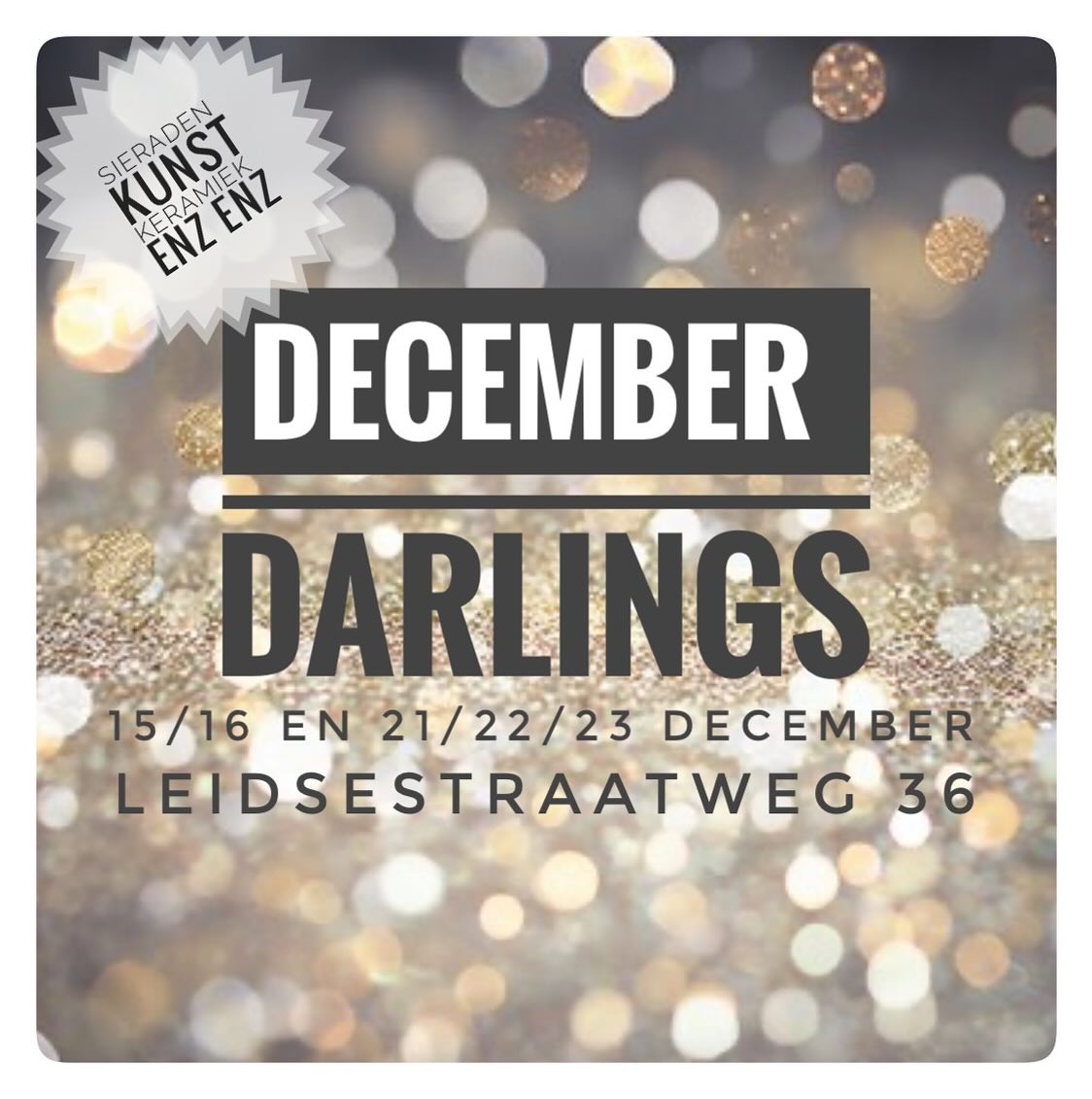 | Do 2 tm zo 5 december 2021 – Galerie en Expositieruimte December Darlings OPEN: Do 2, vr 3 en za 4 december van 10-17 uur en zo 5 december van 11-16 uur. In samenwerking met oud-overbuuf Silvia Veldkamp (v/h Uit je Kunst Conceptstore) komt de zesde editie van DECEMBER DARLINGS eraan! Je kunt weer bijzondere kunstwerkjes en handgemaakte kadootjes inslaan van meer dan 20 kunstenaars en makers. Zaterdag is Blanco Jewelry met theelepelringen in de Expositieruimte. Ze neemt ook opdrachten aan om een ring te maken van je eigen theelepel of taartvorkje. In de galerie verluchtigt John Blok zaterdag de sfeer. Blok is wereldberoemd in Woerden en de rest van Nederland sinds zijn boek ‘Rijmpjes’ dat uiteraard te koop is. Hij brengt ook zijn (N)(R)are kaarten aan de man/vrouw/x. En de houten auto’s van Zeer William. Doet ie goed. Op zaterdag (13-17 uur) en zondag (12-16 uur) kun je een te gekke Pas’Pop’Foto laten maken door Margo de Wijk. Als je wil kan dat op afspraak, klik dan hier om een afspraak in de agenda te zetten. |