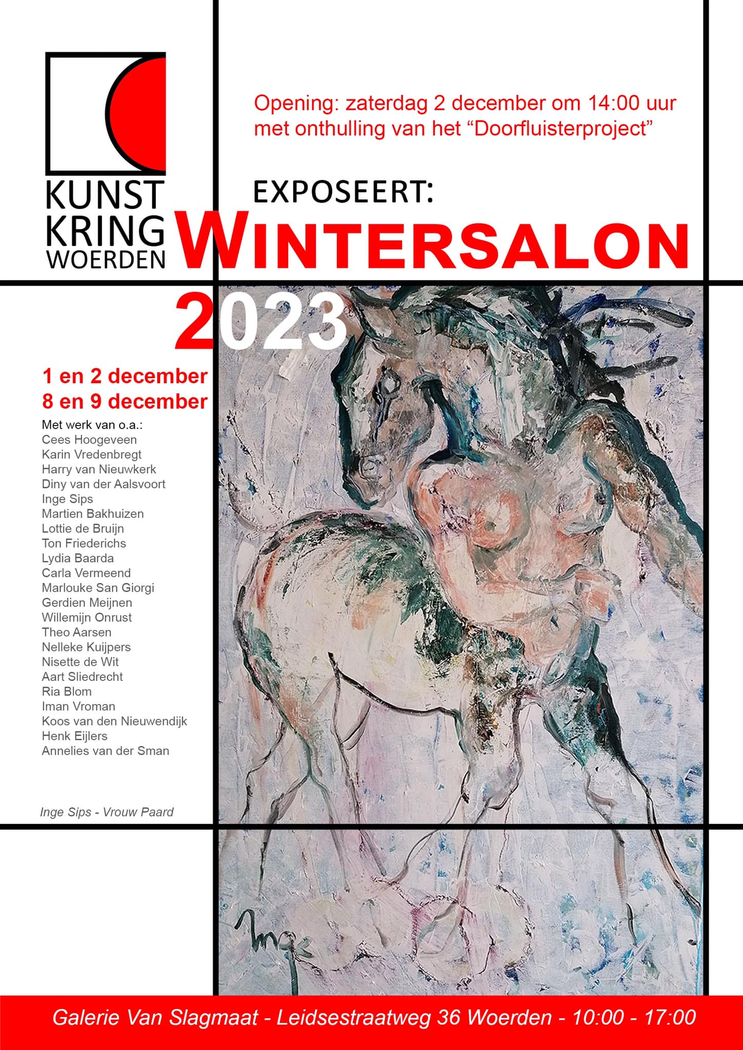 | Vr 9 tm za 17 december 2022 - Expositieruimte van Galerie Van Slagmaat Kunstkring Woerden, Wintersalon ‘Topstukken van de afgelopen 15 jaar’ |