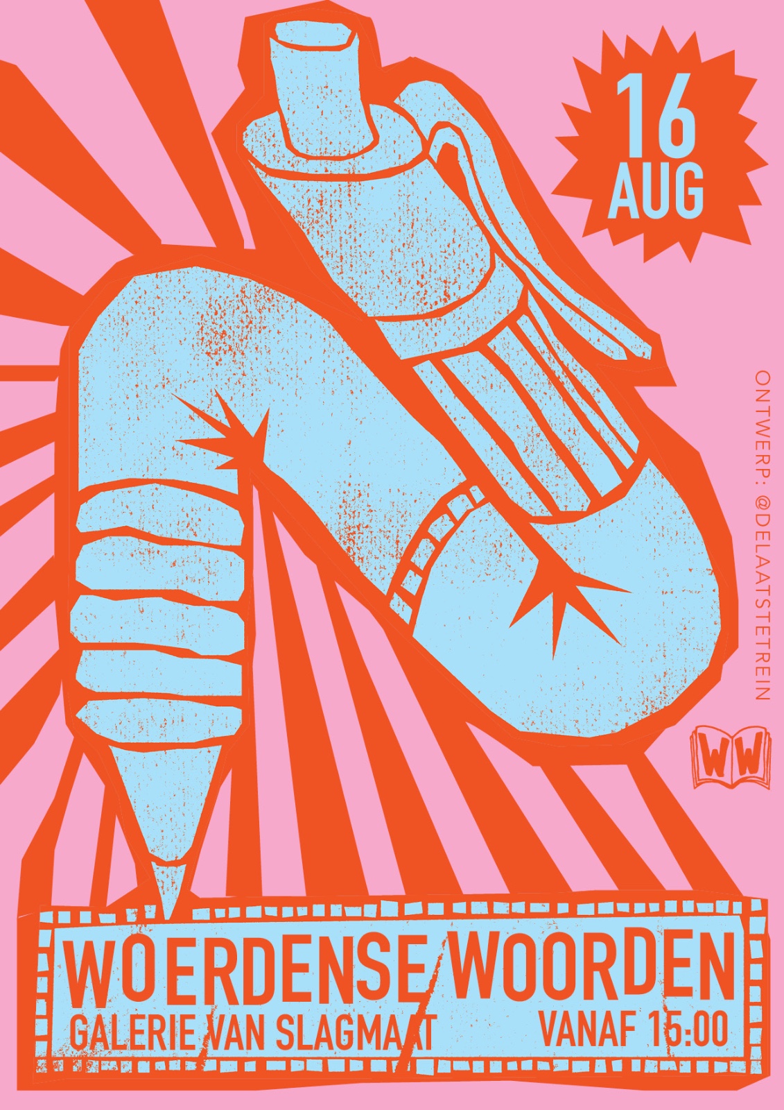| Za 16 augustus 2025 vanaf 15:00 – Galerie Van 15.00-17.00 uur Woerdense Woorden Een initiatief van dichter Ronald E. Aalten dat maandelijks een podium geeft aan woordkunst op verschillende locaties in Woerden. Dichters zijn welkom om eigen werk ten gehore te brengen. Deze editie heeft als thema ‘Aangeraakt’. Daarnaast is er ruimte voor ander eigen werk. Poëzieliefhebbers mogen een toepasselijk gedicht van een ander voordragen. Na afloop lekker napraten met een drankje. Ben je een dichter of/en ben je nieuwsgierig wees welkom! Wil je er meer over weten of durf je niet zo goed een podium op, neem dan contact op met Ronald via de Facebook van Woerdense Woorden. Met o.a. Ronald E. Aalten, Willemijn Onrust en Co van Assema (van de Zaanse dichters, uit Krommenie). |
